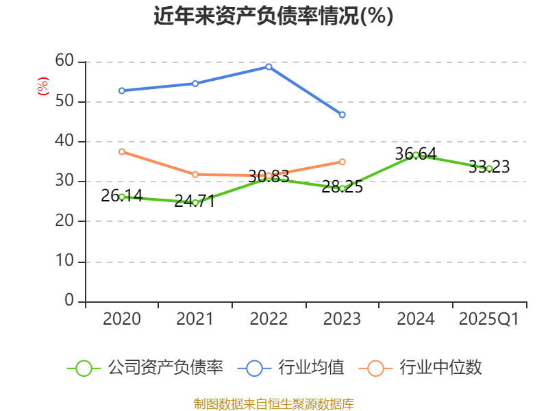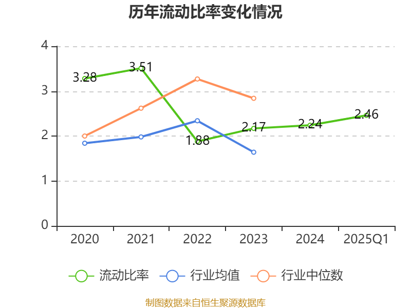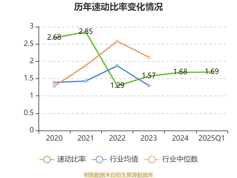 2024年,公司流动比率为2.24,速动比率为1.68。2025年第一季度,公司流动比率为2.46,速动比率为1.69。