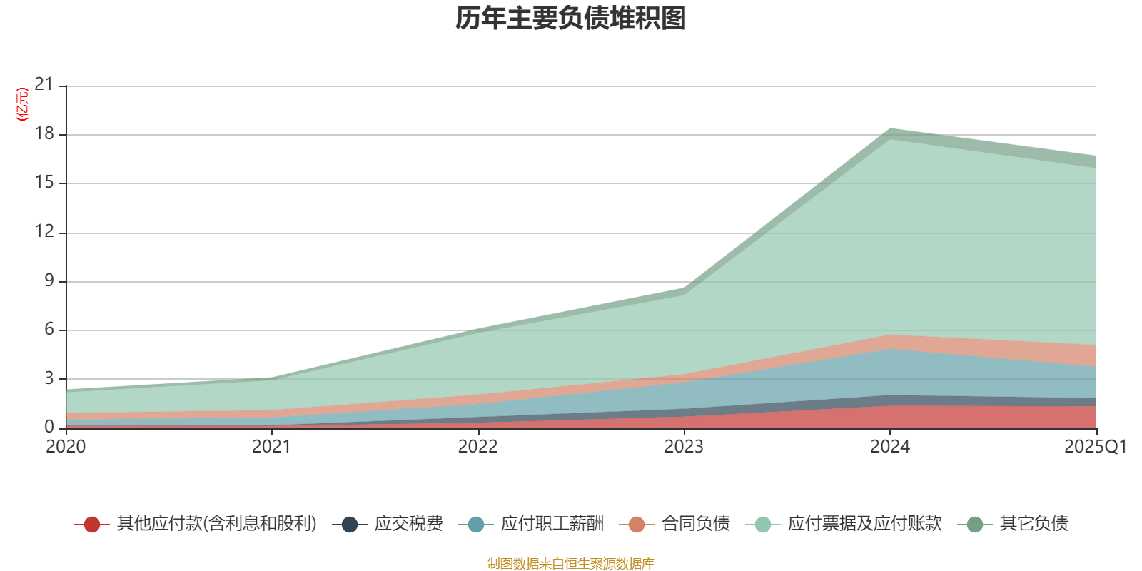 负债重大变化方面,截至2025年一季度末,公司应付票据及应付账款较上年末减少9.56%,占公司总资产比重下降2.31个百分点;应付职工薪酬较上年末减少32.02%,占公司总资产比重下降1.81个百分点;合同负债较上年末增加52.4%,占公司总资产比重上升0.91个百分点;应交税费较上年末减少23.12%,占公司总资产比重下降0.3个百分点。