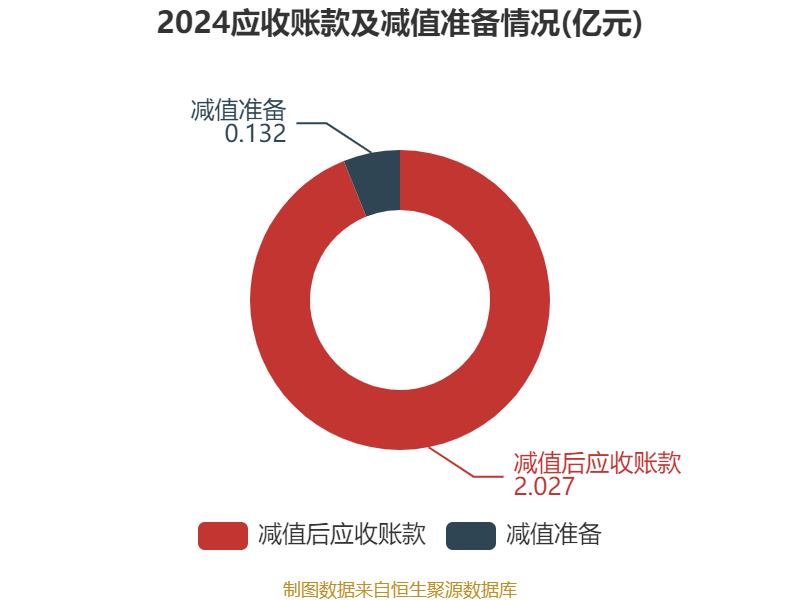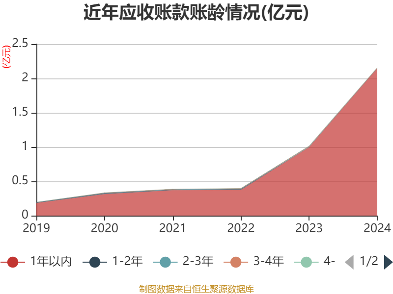 从应收账款账龄结构来看,截至2024年末,公司账龄在1年以内的应收账款余额为2.15亿元,较上年末增长1.15亿元,占应收账款总额比例为99.55%,较上年末上升1.16个百分点。