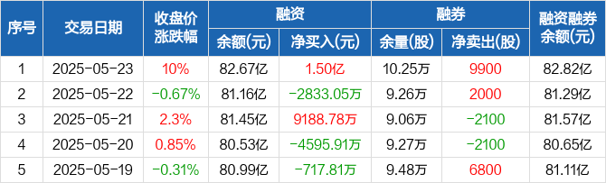 赛力斯融资融券信息显示,2025年5月23日融资净买入1.5亿元;融资余额82.67亿元,较前一日增加1.85%。