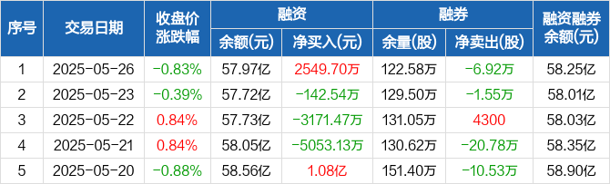 兴业银行融资融券信息显示,2025年5月26日融资净买入2549.7万元;融资余额57.97亿元,较前一日增加0.44%。