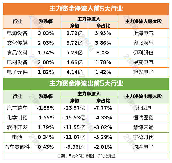 5月26日,市场全天震荡调整,创业板指领跌,宁德时代跌近5%。截至收盘,沪指跌0.05%,深成指跌0.41%,创业板指跌0.8%。沪深两市全天成交额1.01万亿,较上个交易日缩量1456亿。