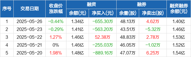 燕京啤酒融资融券信息显示,2025年5月26日融资净偿还655.3万元;融资余额1.34亿元,创近一年新低,较前一日下降4.66%。