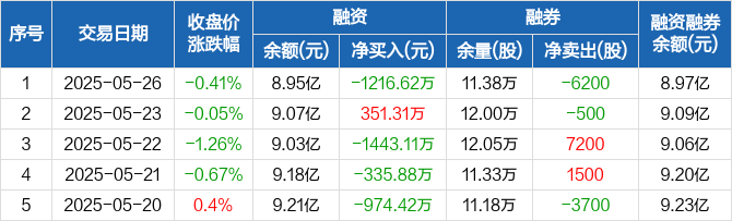 宇信科技融资融券信息显示,2025年5月26日融资净偿还1216.62万元;融资余额8.95亿元,较前一日下降1.34%。
