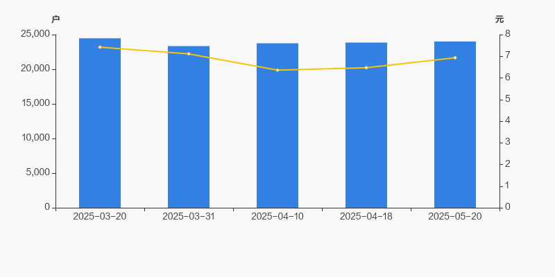截至2025年5月20日,公司最新总股本为5.08亿股,且均为流通股。户均持有流通股数量由上期的2.13万股下降至2.11万股,户均流通市值14.65万元。