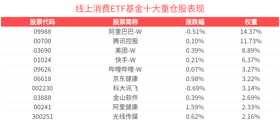 线上消费ETF基金紧密跟踪中证沪港深线上消费主题指数,中证沪港深线上消费主题指数从内地与香港市场中选取50只主营业务涉及线上购物、数字娱乐、在线教育以及远程医疗等领域上市公司证券作为指数样本,以反映内地与香港市场线上消费主题上市公司证券的整体表现。
