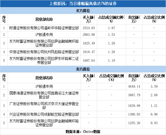 沪股通现身龙虎榜,百利电气涨停(05-27)