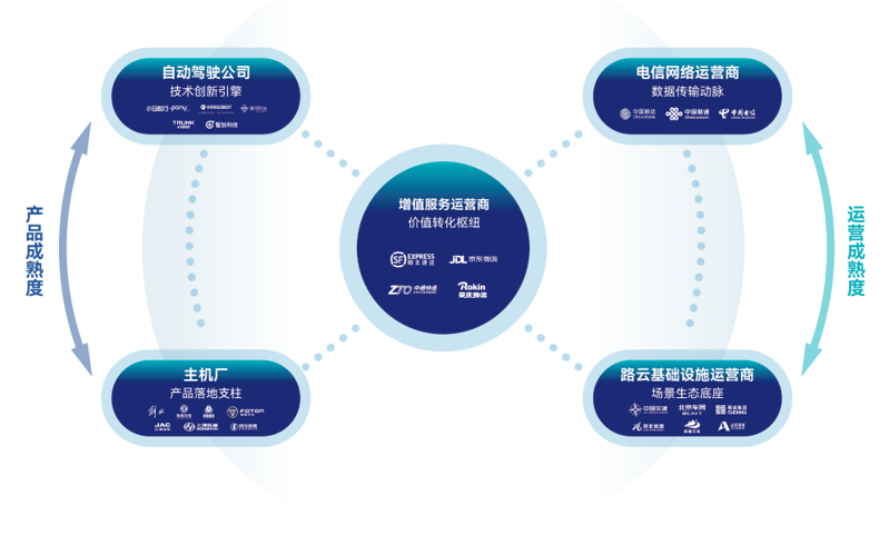 基于对商用发展的深入思考及对产业演进的前瞻研判,车路云50人在《报告》中创新性提出自动驾驶干线物流“蝴蝶模型”,以产业协同为核心,从产品成熟度和运营成熟度两个维度,串联起支撑行业商用发展的各关键主体,并指出自动驾驶干线物流已进入蓄力突破的新阶段,技术成本、商业模式、市场、政策四大核心要素的发展步伐正逐步加快,加速商业化落地攻坚。