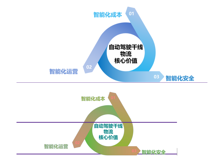 上述痛点,虽是制约行业进一步升级的瓶颈,却也为自动驾驶技术的应用创造了需求。《报告》中提到:从场景特征来看,干线物流呈现出半封闭性、中高速运行和中长距离运输三大典型属性,为自动驾驶技术的商业化落地提供了理想条件。通过深度融合数字化技术,自动驾驶正在全方位重塑干线物流的价值链条:在成本端实现人力与能耗的持续优化,在运营端提升资产利用率和运输效率,在安全端构建智能化的风险防控体系。这种多维度的价值重构,正在释放出巨大的商业潜力,推动物流产业向智能化、高效化加速演进。