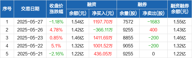新益昌融资融券信息显示,2025年5月27日融资净买入1197.7万元;融资余额1.54亿元,创历史新高,较前一日增加8.42%。