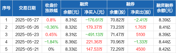 乐普医疗融资融券信息显示,2025年5月27日融资净偿还176.61万元;融资余额8.31亿元,较前一日下降0.21%。
