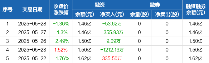 同益中融资融券信息显示,2025年5月28日融资净偿还53.62万元;融资余额1.46亿元,较前一日下降0.37%。