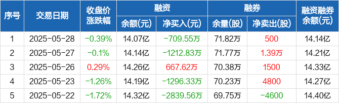 东兴证券融资融券信息显示,2025年5月28日融资净偿还709.55万元;融资余额14.07亿元,较前一日下降0.5%。