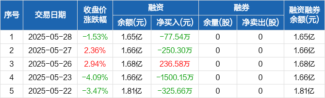 格灵深瞳融资融券信息显示,2025年5月28日融资净偿还77.54万元;融资余额1.65亿元,较前一日下降0.47%。