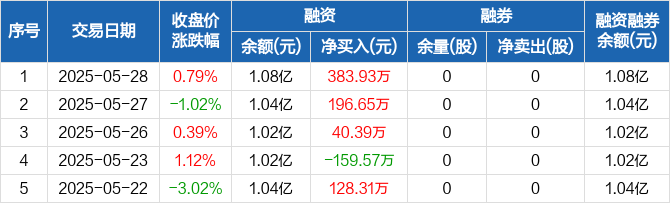 东亚机械融资融券信息显示,2025年5月28日融资净买入383.93万元;融资余额1.08亿元,创历史新高,较前一日增加3.68%