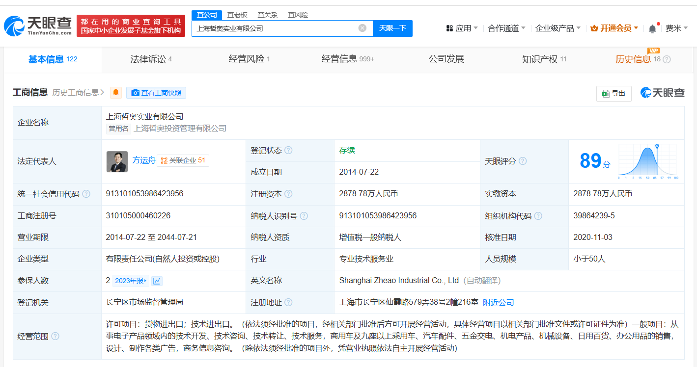 南方财经5月29日电,天眼查法律诉讼信息显示,近日,哪吒汽车原CEO张勇所持上海哲奥实业有限公司79万余元股权被冻结,执行法院为山东省青岛市市北区人民法院,冻结期限为2025年5月22日至2027年5月21日。值得注意的是,此前,张勇已被冻结4050万元股权,股权所在企业为桐乡合创德力叁科技咨询合伙企业(有限合伙)。