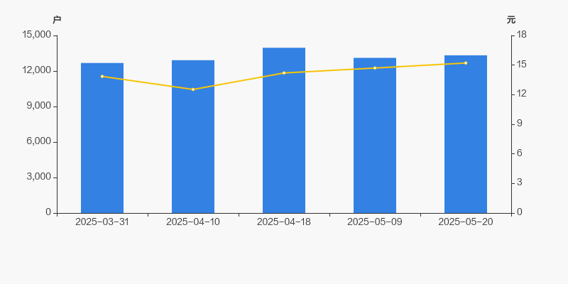 截至2025年5月20日,公司最新总股本为2.23亿股,其中流通股本为8512万股。户均持有流通股数量由上期的6492股下降至6388股,户均流通市值9.72万元。