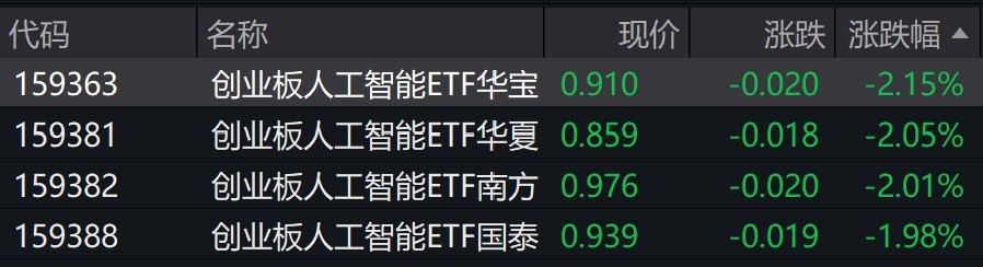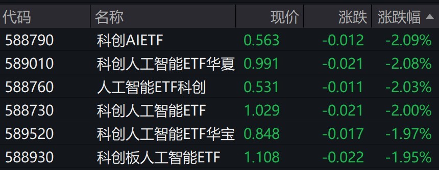 受盘面影响,人工智能相关ETF跌约2%。