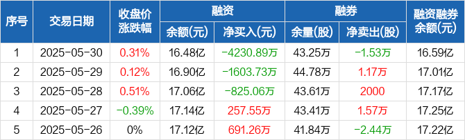 中国海油融资融券信息显示,2025年5月30日融资净偿还4230.89万元;融资余额16.48亿元,较前一日下降2.5%。