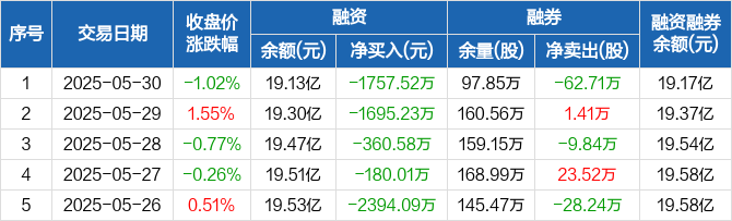 天风证券融资融券信息显示,2025年5月30日融资净偿还1757.52万元;融资余额19.13亿元,较前一日下降0.91%。