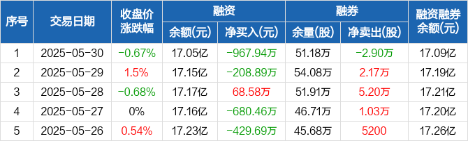 西部证券融资融券信息显示,2025年5月30日融资净偿还967.94万元;融资余额17.05亿元,较前一日下降0.56%。