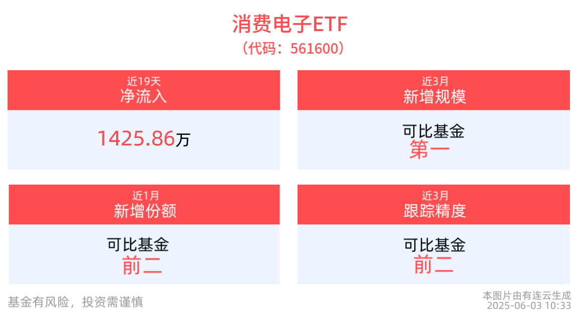 资金流入方面,消费电子ETF近19个交易日内,合计“吸金”1425.86万元。