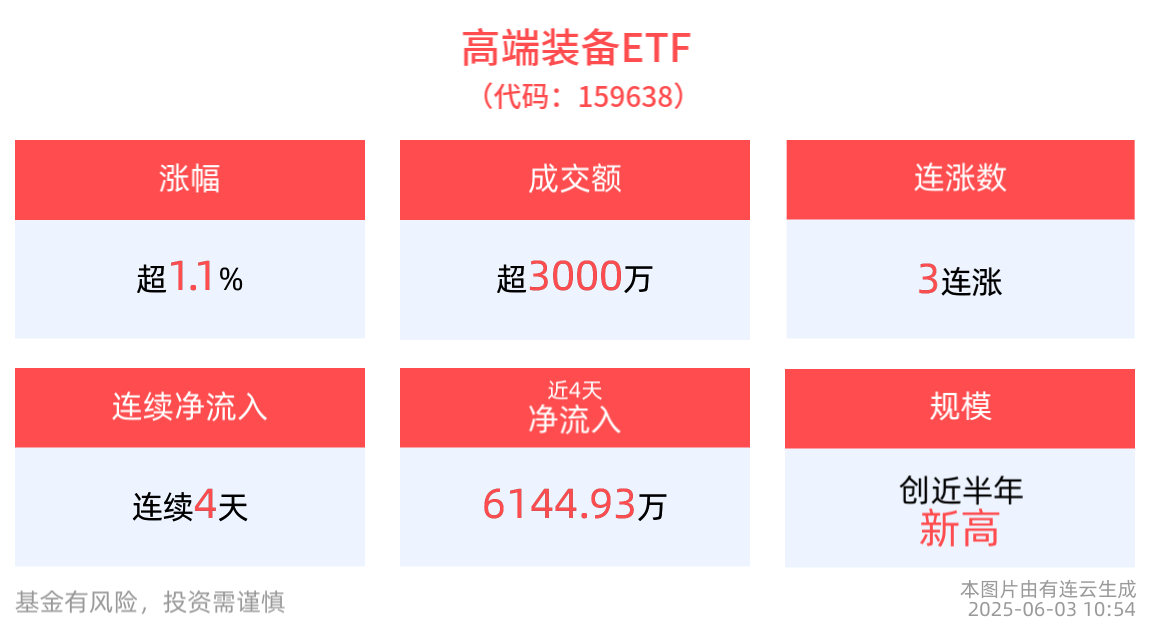近4天获得连续资金净流入,高端装备ETF(159638)冲击3连涨,成分股中天火箭10cm涨停!