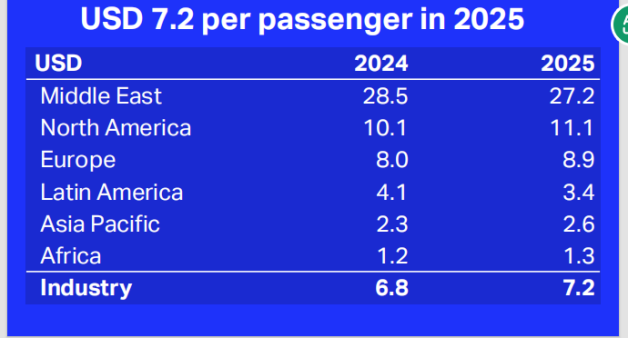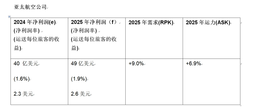 根据国际航协预测,2025年,亚太航空公司的净利润预计将达到49亿美元,比2024年的40亿美元有所提升。不过,其运送每位旅客的收益预计仅2.6美元,而中东地区每位旅客的净利润可以达到27.2美元。