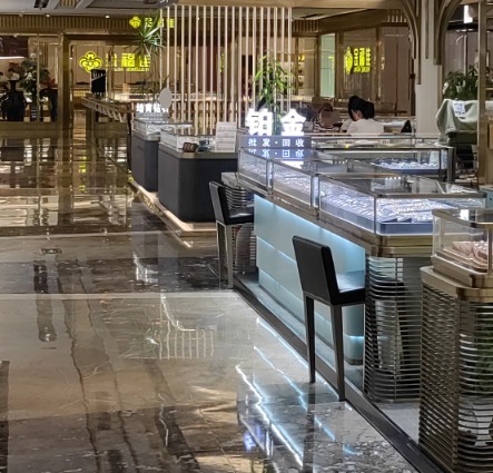 近日,记者再次来到深圳水贝黄金珠宝市场看到,与黄金饰品的高消费热情相比,铂金饰品顾客寥寥,零售消费的热度仍不高。不过,依旧有一些专营铂金饰品的店铺与柜台。