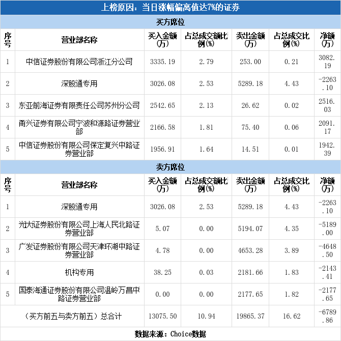 今日龙虎榜单上出现了深股通的身影,占据了买二、卖一的位置,净卖出2263.10万元,占当日成交总额的1.89%。