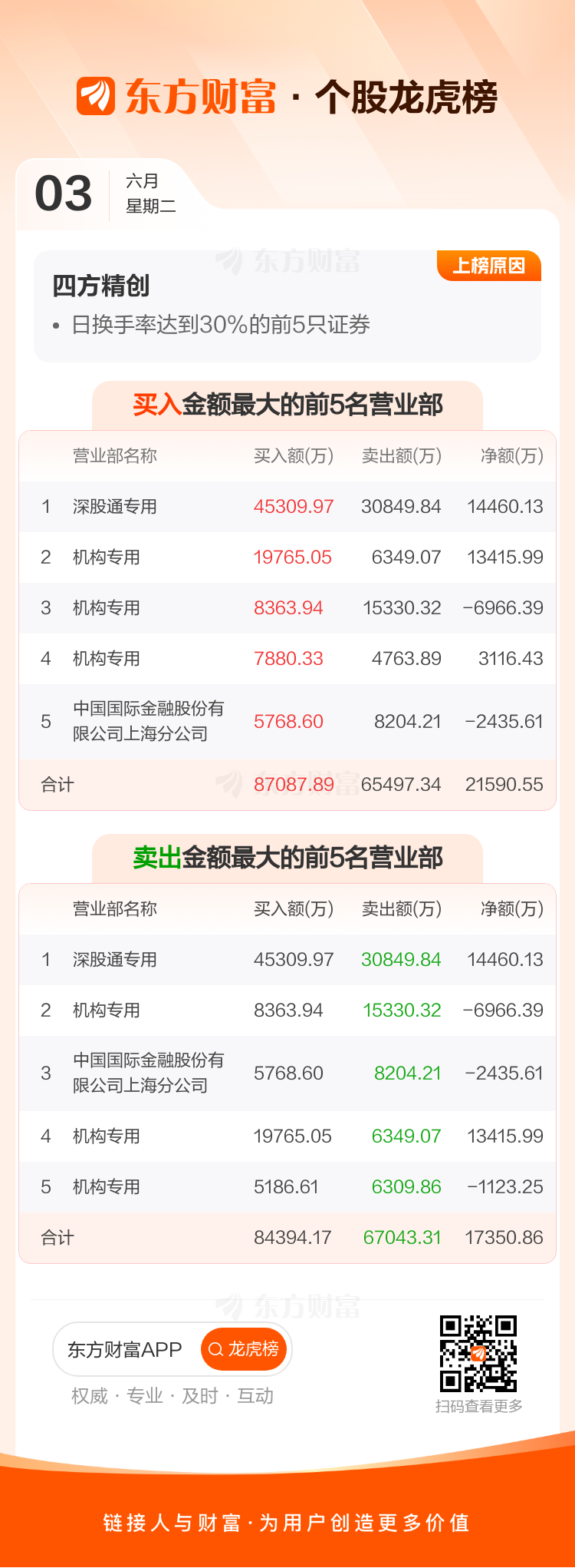 交易所2025年6月3日公布的交易公开信息显示,四方精创因成为日换手率达到30%的前5只证券上榜。四方精创当日收报27.41元,涨跌幅10.57%,偏离值37.52%,换手率37.52%,成交额55.74亿。