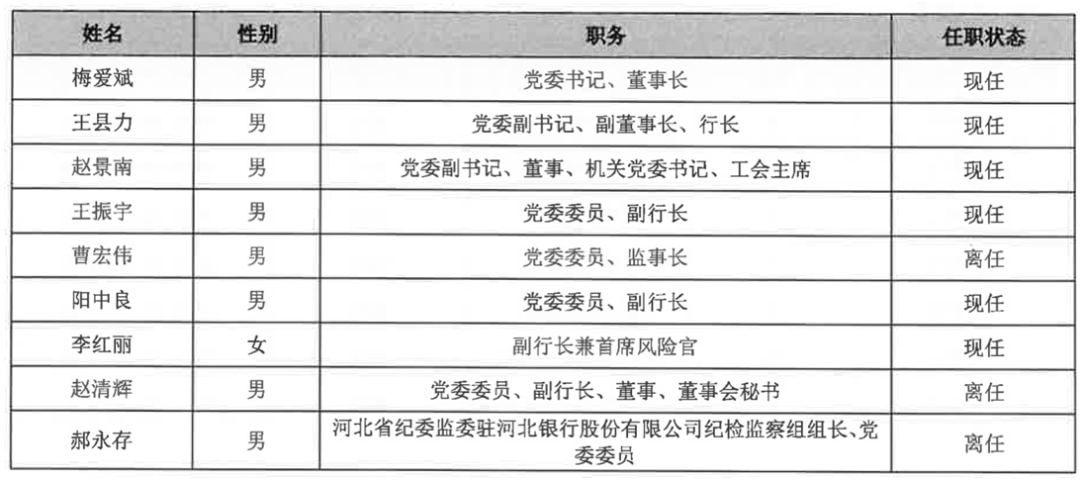 河北银行高管来源:河北银行财报