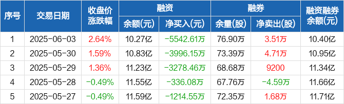 温氏股份融资融券信息显示,2025年6月3日融资净偿还5542.61万元;融资余额10.27亿元,较前一日下降5.12%。