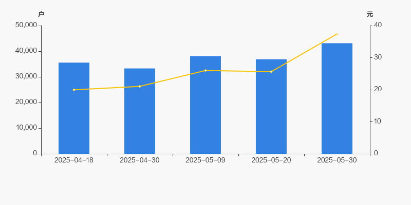 2025年4月18日至今,公司股东户数显著增长,区间涨幅为21.26%。2025年4月18日至2025年5月30日区间股价上涨87.32%。