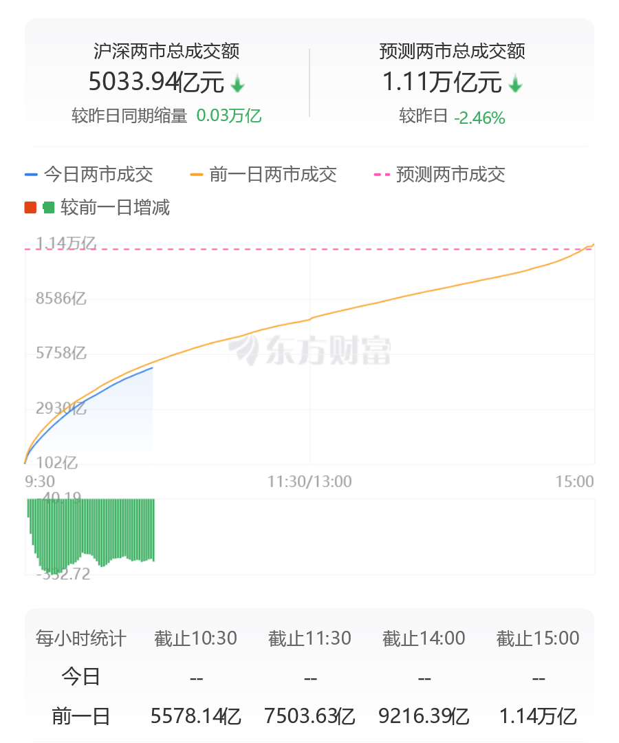 沪深两市成交额突破5000亿。