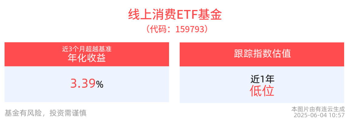 截至2025年6月4日 10:57,中证沪港深线上消费主题指数(931481)上涨0.67%,成分股网易云音乐(09899)上涨4.43%,美团-W(03690)上涨4.17%,东方甄选(01797)上涨4.06%,完美世界(002624)上涨3.79%,横店影视(603103)上涨2.92%。线上消费ETF基金(159793)上涨0.57%,最新价报0.89元。拉长时间看,截至2025年6月3日,线上消费ETF基金近半年累计上涨3.77%。