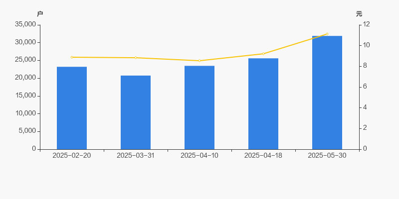 截至2025年5月30日,公司最新总股本为4.2亿股,其中流通股本为2.57亿股。户均持有流通股数量由上期的1万股下降至8060股,户均流通市值8.96万元。