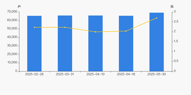 2025年2月28日至今,公司股东户数有所增长,区间涨幅为5.69%。2025年2月28日至2025年5月30日区间股价上涨21.17%。