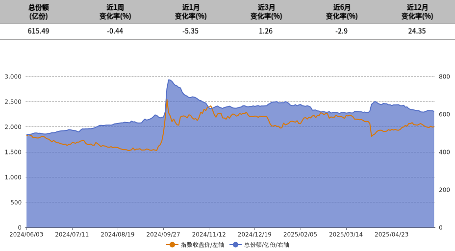 份额方面,截至2025年6月3日,指数挂钩ETF中,近1年份额变动排名前3的指数为沪深300、中证1000、上证50,指数挂钩ETF份额分别变动739.02亿份、298.24亿份、135.62亿份;份额变动幅度分别为34.90%、105.24%、27.14%;创业板指挂钩ETF份额变动120.53亿,份额变动幅度为24.35%。