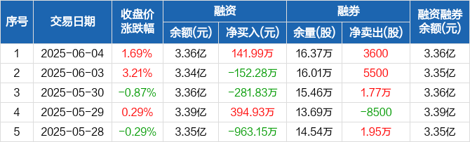 湖南白银融资融券信息显示,2025年6月4日融资净买入141.99万元;融资余额3.36亿元,较前一日增加0.42%。