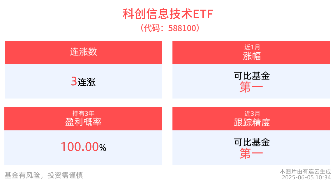 科创信息技术ETF(588100)冲击3连涨,近1年日均成交居可比基金第一!