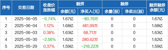 大东南融资融券信息显示,2025年6月5日融资净偿还80.79万元;融资余额1.67亿元,较前一日下降0.48%。