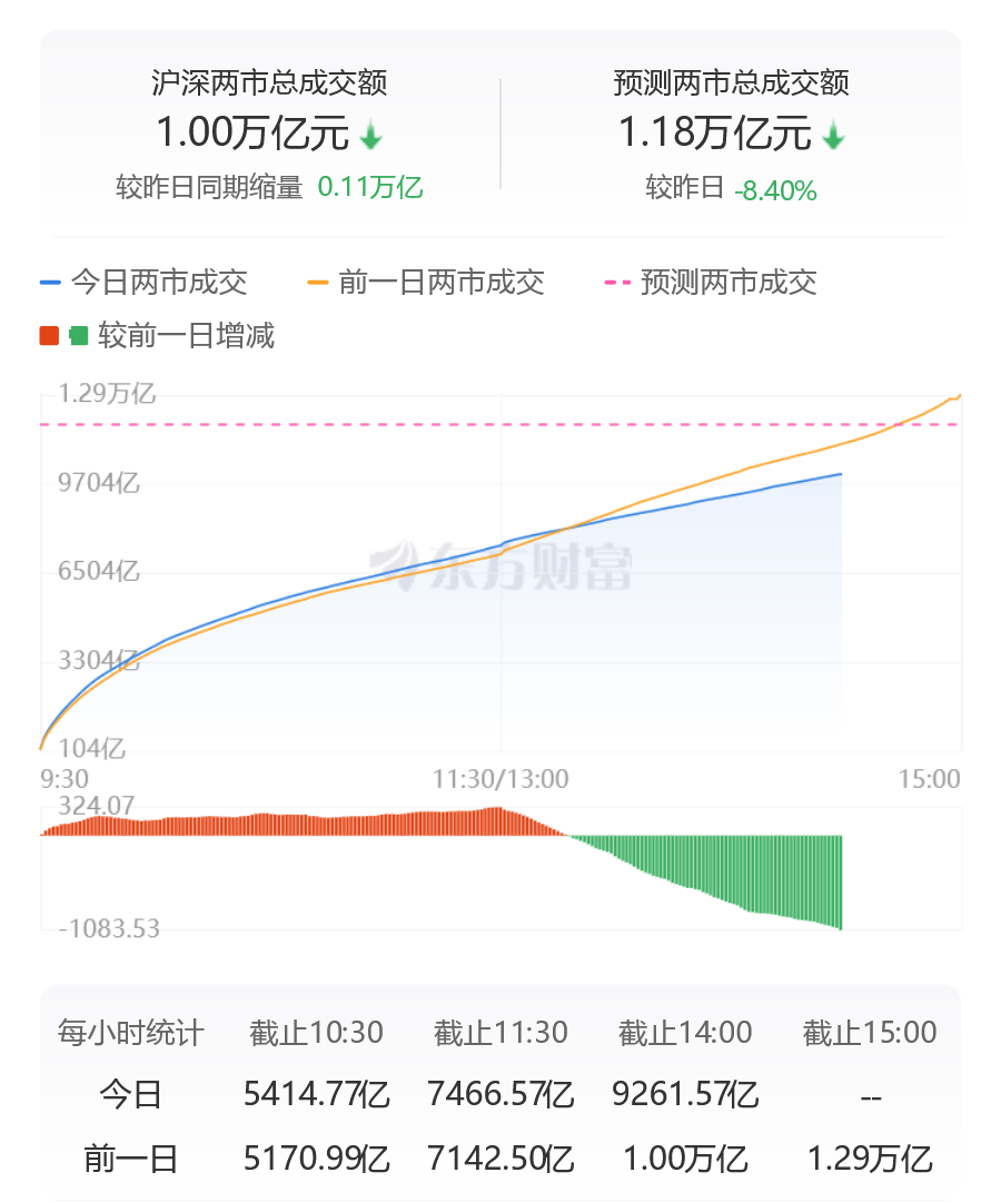 沪深两市成交额连续第7个交易日破万亿,较昨日此时缩量约1078.02亿元。