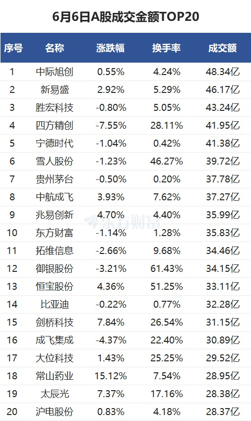 沪深两市成交额1.15万亿元,较上一交易日缩量1384亿元。个股方面,中际旭创当日成交48.34亿元。新易盛当日成交46.17亿元。