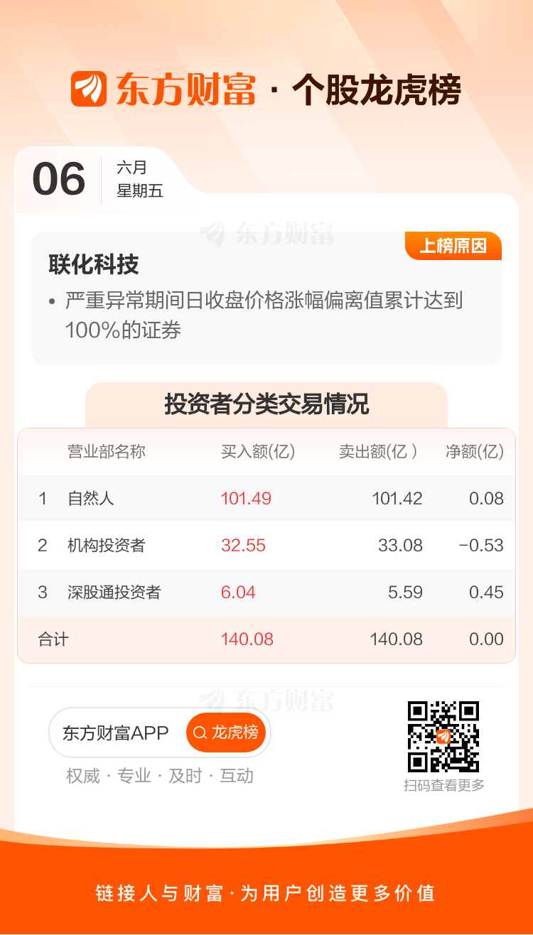 交易所2025年6月6日公布的交易公开信息显示,联化科技因成为严重异常期间日收盘价格涨幅偏离值累计达到100%的证券、连续三个交易日内,涨幅偏离值累计达到20%的证券上榜。联化科技当日收报12.8元,涨跌幅6.93%,换手率24.26%,成交额27.92亿。严重异常期间5月23日至6月6日,期间涨幅102.21%,累计偏离值101.37%,区间成交额140.08亿。异常期间6月4日至6月6日,期间涨幅26.48%,累计偏离值25.15%,区间成交额78.33亿。
