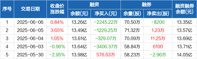 兴森科技融资融券信息显示,2025年6月6日融资净偿还2245.22万元;融资余额13.26亿元,较前一日下降1.66%。