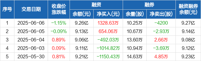 国信证券融资融券信息显示,2025年6月6日融资净买入1328.63万元;融资余额9.26亿元,较前一日增加1.46%。
