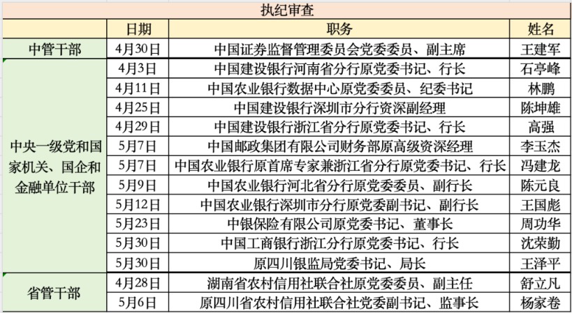 2025年4月、5月金融系统被查干部澎湃新闻整理