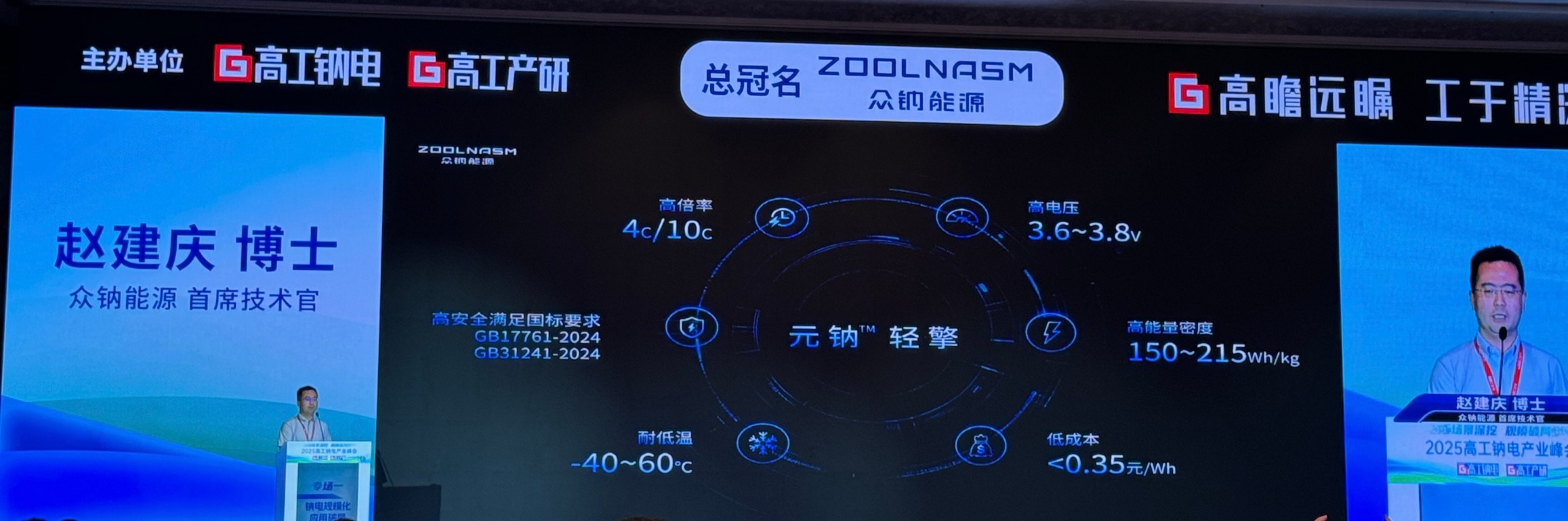众钠能源首席技术官赵建庆博士在峰会现场表示:“元钠轻擎电池是基于硫酸铁钠电池体系的全新超高能量密度锂钠融合电池,其核心突破在于打破了单一离子储能机制,成功实现锂/钠电池优势的深度协同。”