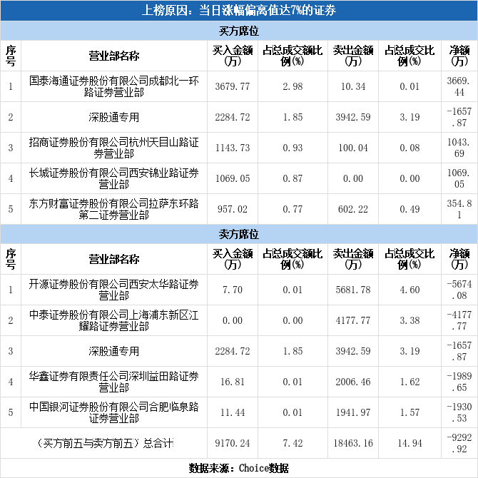 今日龙虎榜单上出现了深股通的身影,占据了买二、卖三的位置,净卖出1657.87万元,占当日成交总额的1.34%。